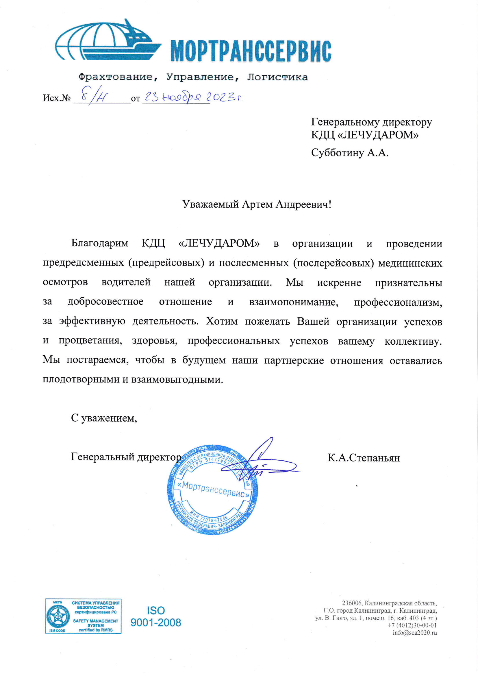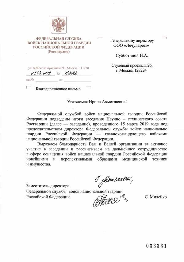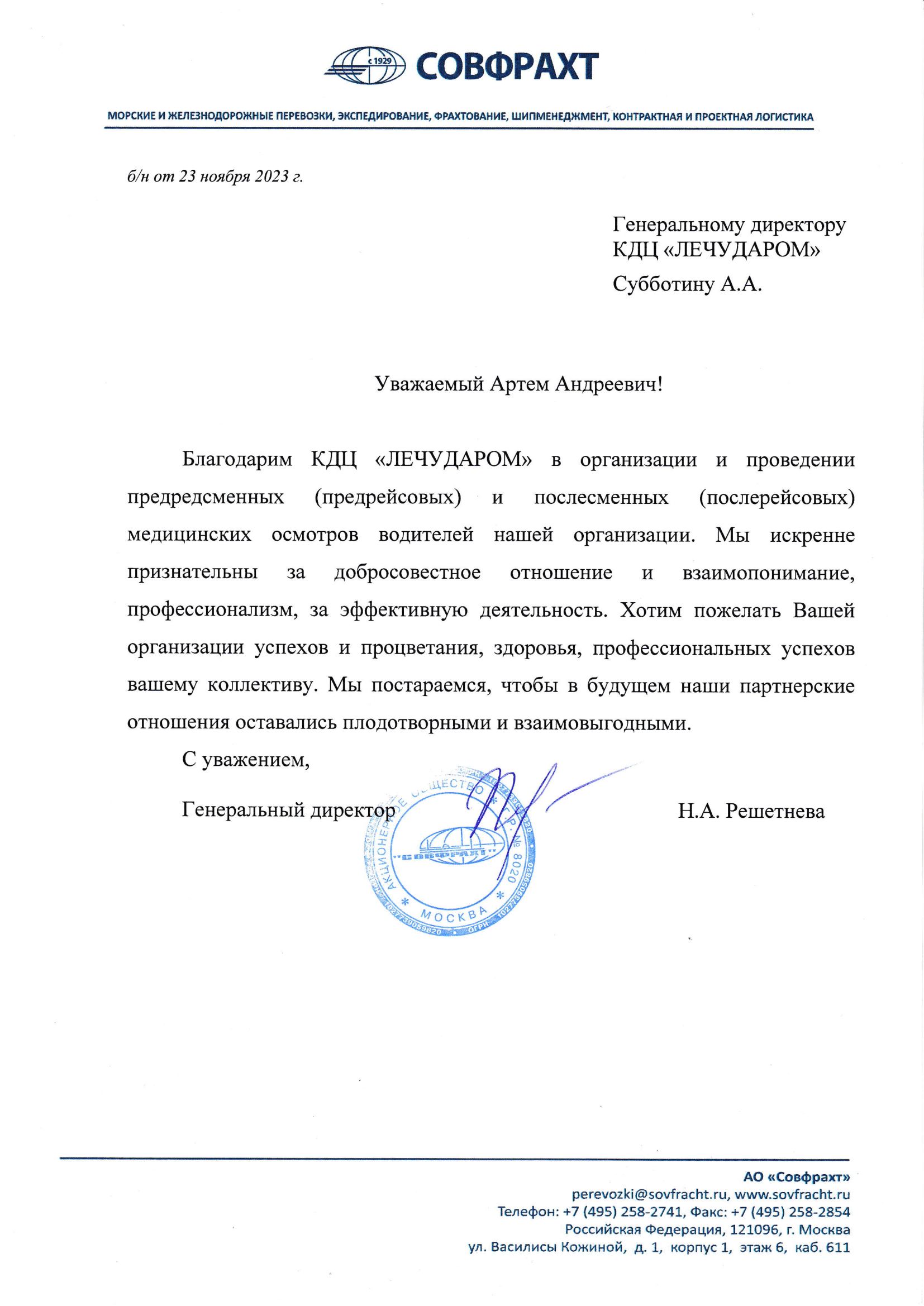 Письма благодарности, отзывы КДЦ «ЛЕЧУДАРОМ»