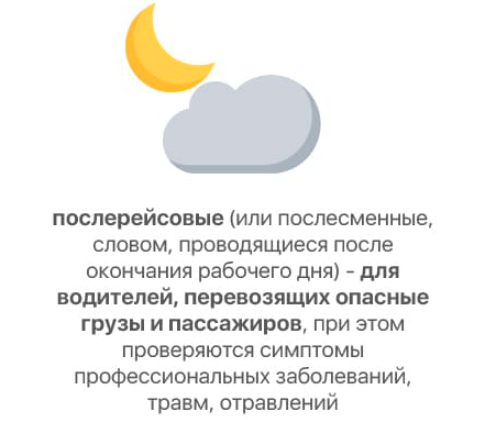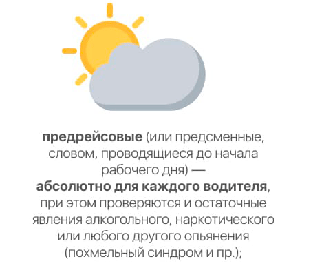 Предрейсовый мед и тех осмотр водителей, как следует из названия, производится перед рейсом либо перед заступлением на смену. На медосмотре проверяется состояние здоровья, возможность управления транспортным средством, учитываются жалобы водителя. В журнале и путевом листе фиксируется допуск к работе.