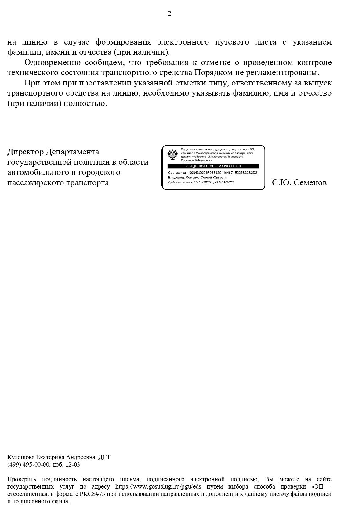 Стоит обратить внимание на письмо Минтранса России № ДЗ-514-ПГ от 14.02.2024г. в котором говорится, что вид отметки «предрейсовый технический осмотр пройден» ничем не регламентирован, но в самой отметке должно быть прописано полностью фамилия, имя, отчество.