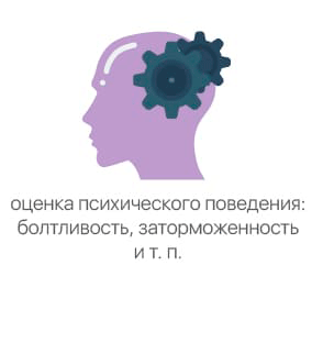 • оценка психического поведения: болтливость, заторможенность и т. п.