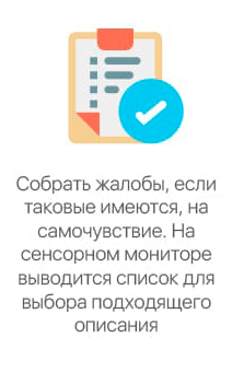 1. Собрать жалобы, если таковые имеются, на самочувствие. На сенсорном мониторе выводится список для выбора подходящего описания.