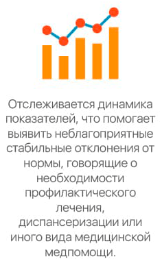 7. Отслеживается динамика показателей, что помогает выявить неблагоприятные стабильные отклонения от нормы, говорящие о необходимости профилактического лечения, диспансеризации или иного вида медицинской медпомощи.