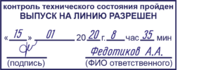 - ВЫПУСК НА ЛИНИЮ РАЗРЕШАЮ» ставит техник. По новым требования на штампе должно быть полностью прописано ФИО!