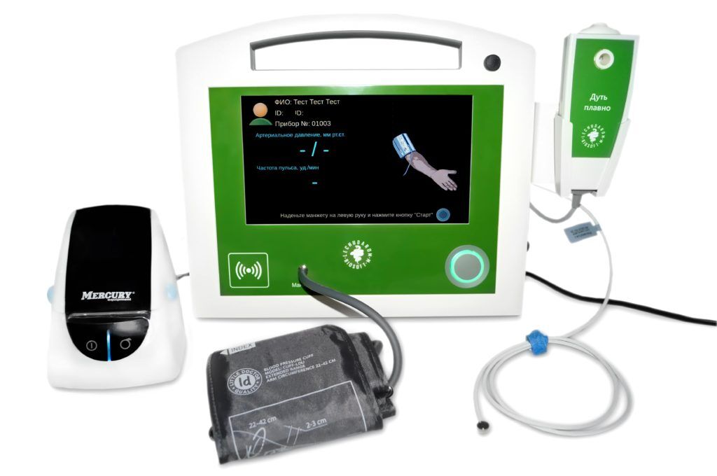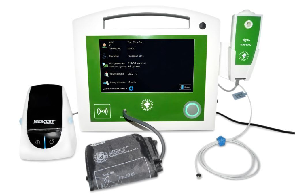 • изменения габаритов основного блока. Уменьшение параметров до размеров игровой приставки, которая синхронизируется со смартфоном. Подойдет для дистанционного предрейсового, послерейсового медицинского контроля водителей ; предсменных, послесменных осмотров сотрудников, занятых на вредном или опасном для здоровья производстве.