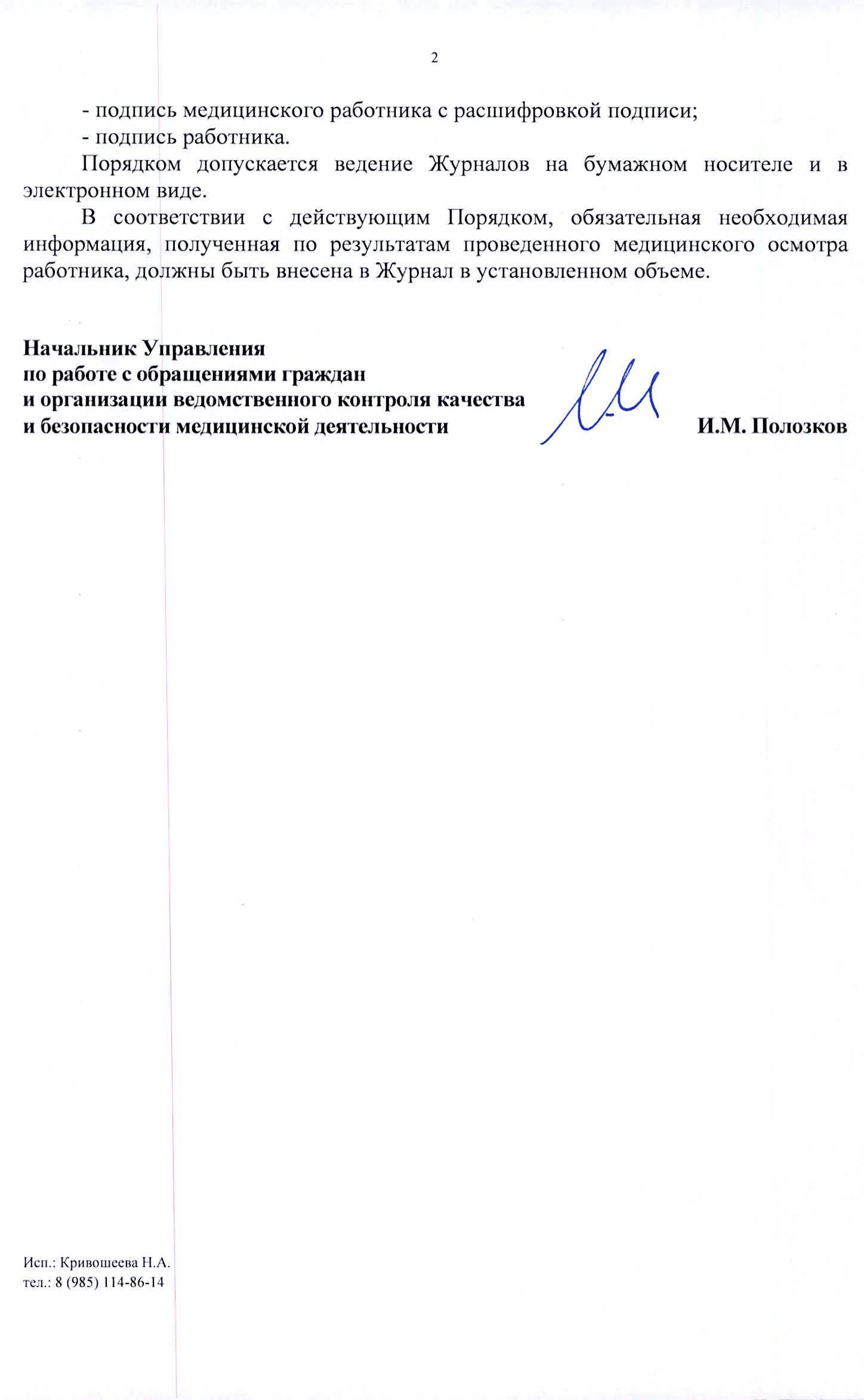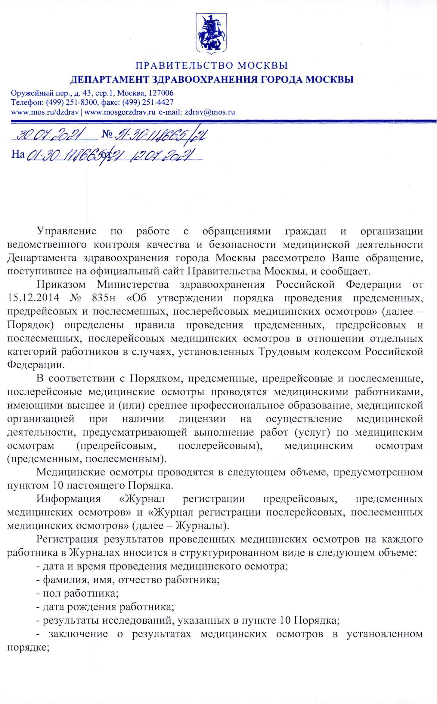 Письмо Департамента здравоохранения города Москвы по правилам заполнения журнала предрейсовых медицинских осмотров 51-30-118665/21 от 30.07.2021 года.
