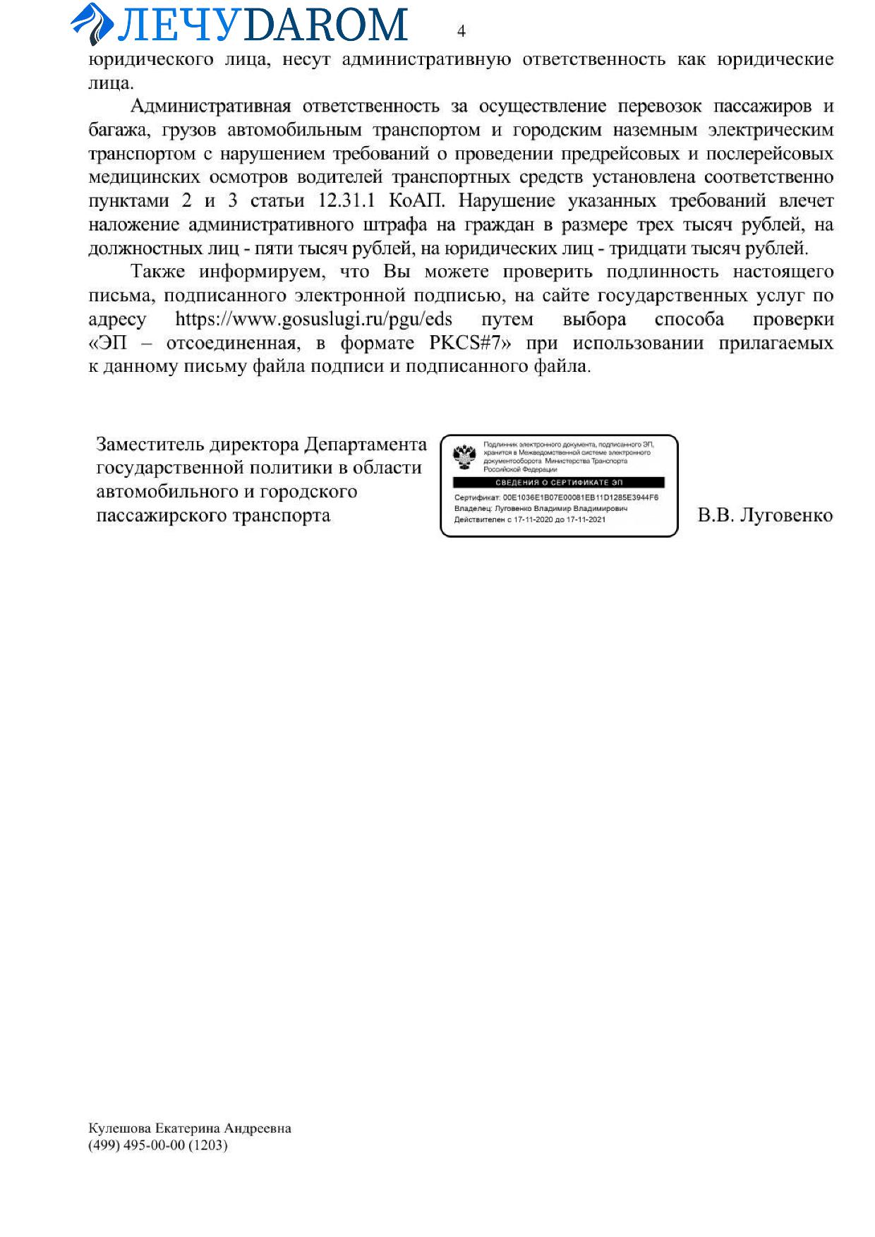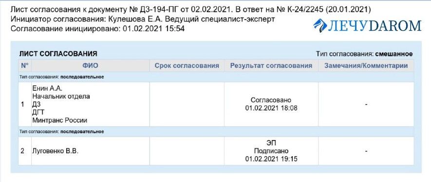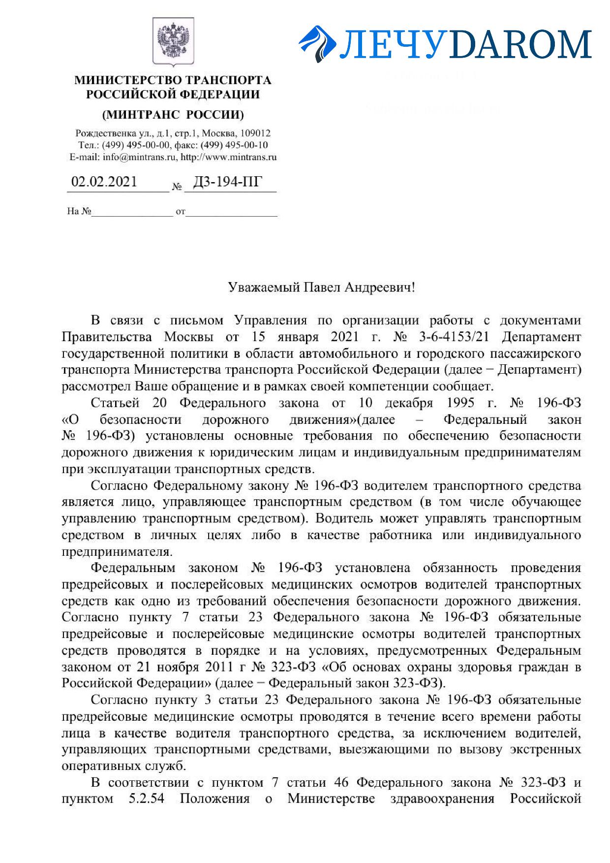 В письме Минтранса от 02 февраля 2021 года № ДЗ-194-ПГ Департамент государственной политики о области автомобильного и городского пассажирского транспорта Министерства транспорта РФ.