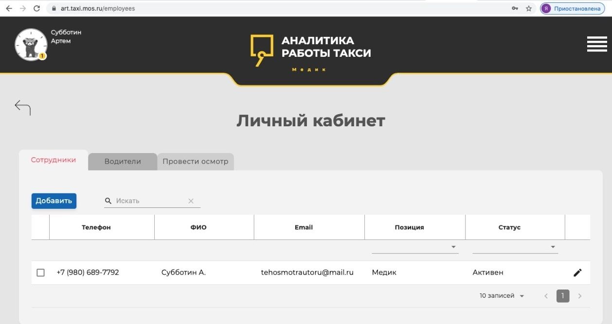 Система Цифрового профиля водителя и работа служб ТАКСИ